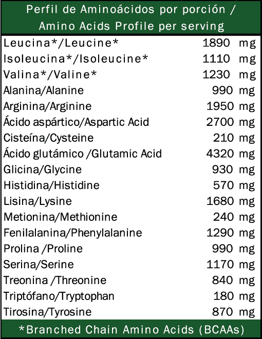 Esta proteĆna destaca por su perfil completo de aminoĆ”cidos y su alto contenido de BCAA.